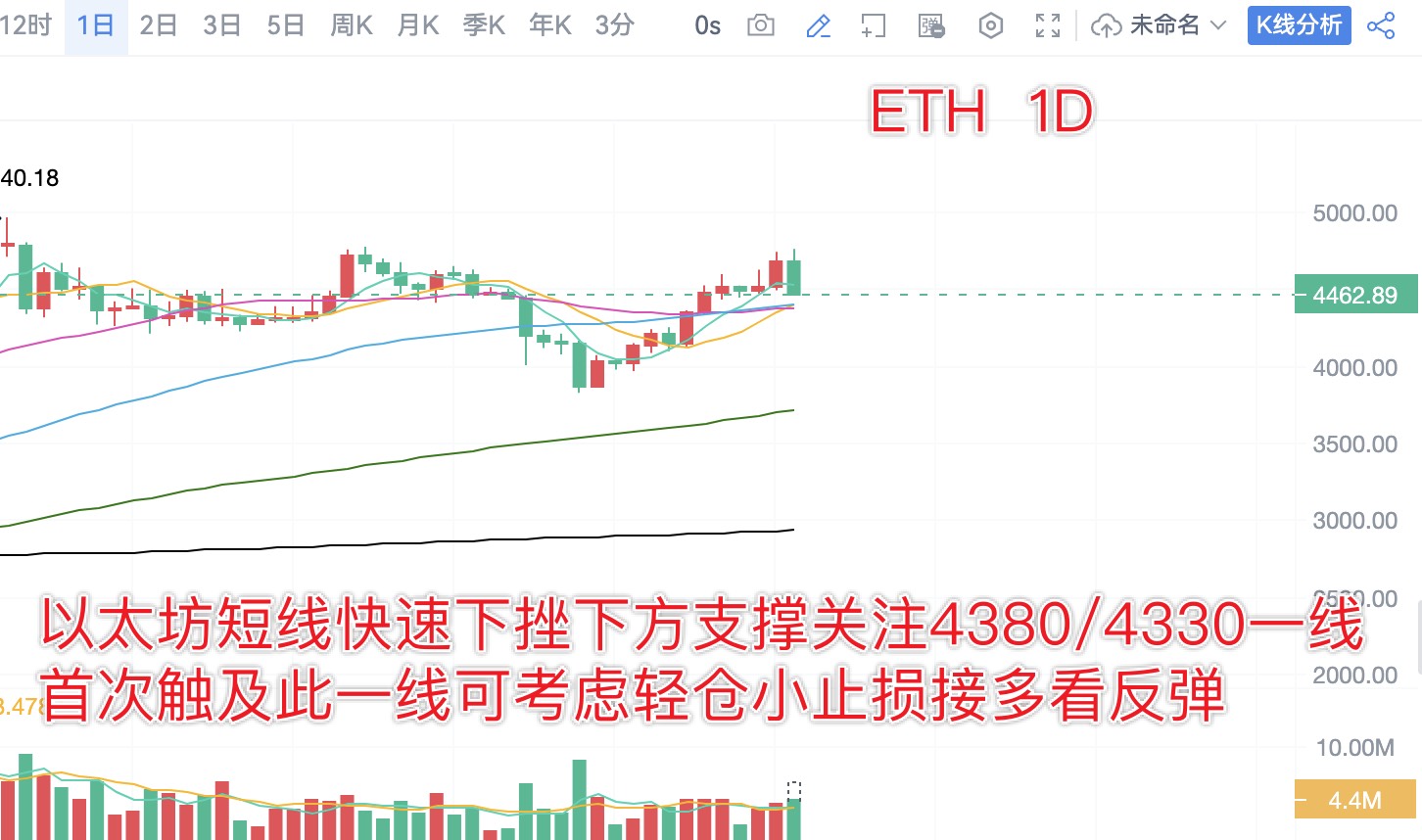ETH :4380/4300多,目标4450/4550;空单可考虑在45304600一线参与