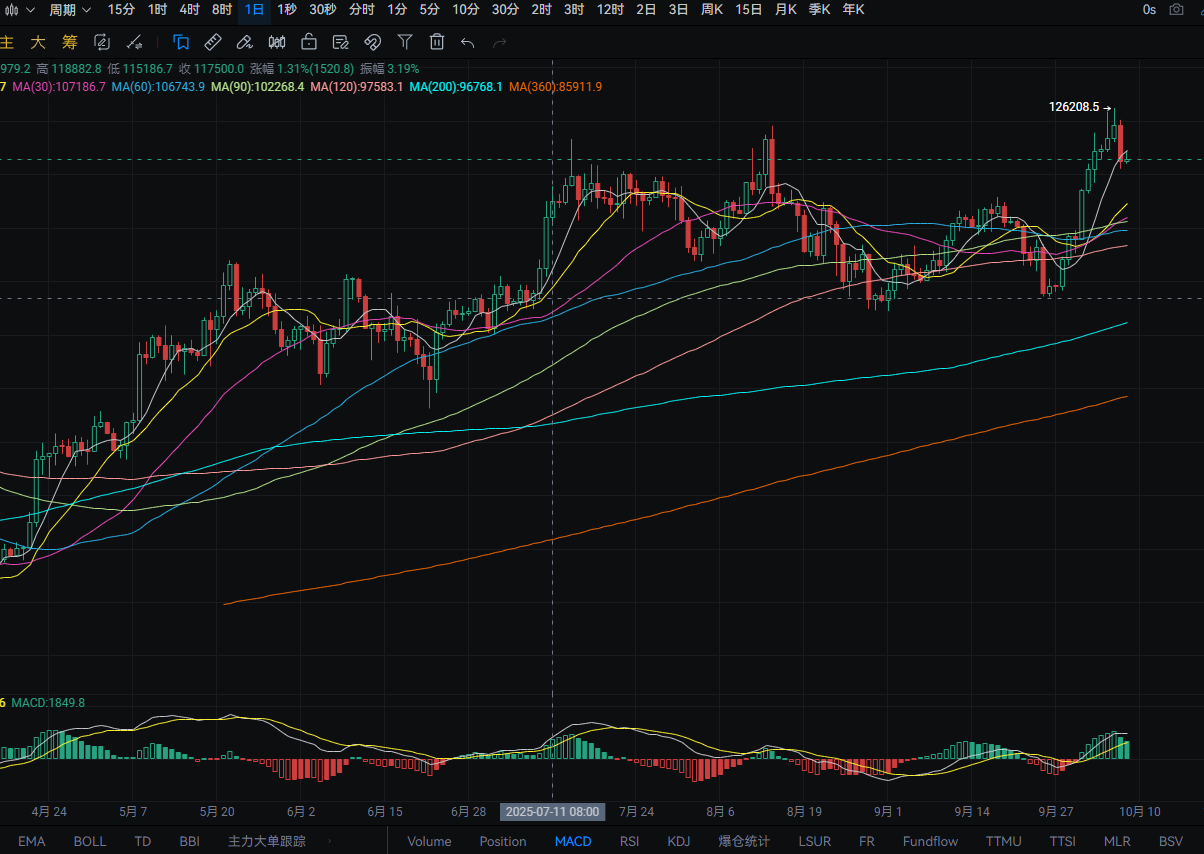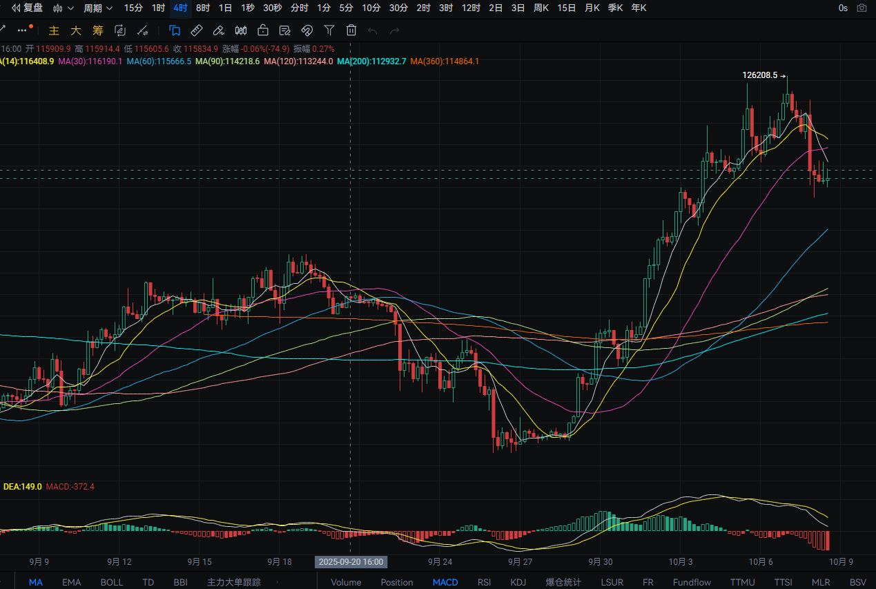 10.8大饼昨日持续阴跌 BNB再次创造新高 美国政府停摆延缓加密市场结构法案进程
