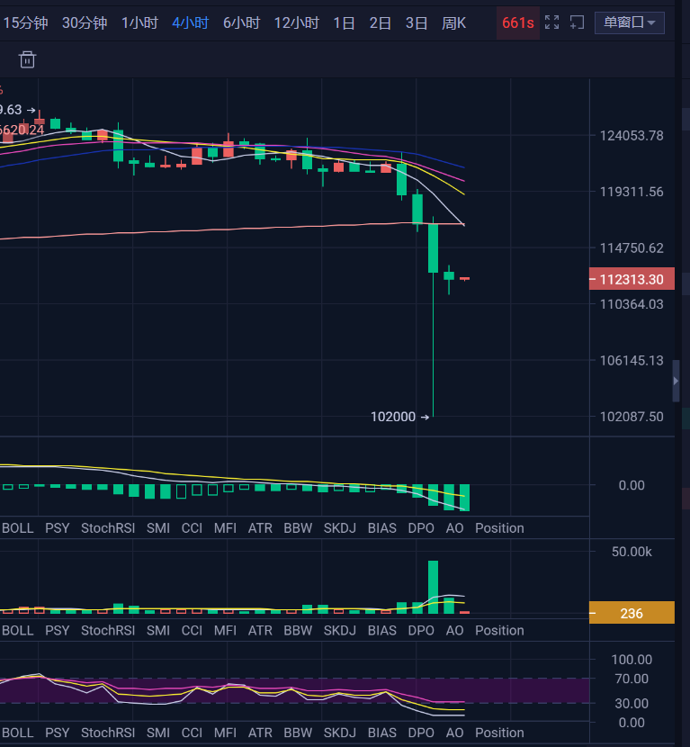 四小时级别,这样的走势就不太好了,本来昨天也提到过,行情在空头周期中走了很久,之前的预计是没看到能够出现凌晨这种极端下跌行情的情况下,行情是希望能够先反弹一下,将技术指标修复之后,再来配合上日线级别的空头预期开启下跌回落的行情,但现在这波下跌出现,日线的空头回落预期直接走了出来,而四小时却是继续在空头周期形成放量,这种趋势下,后续如果震荡盘整之后,将四小时的技术指标进行修复之后,还是要继续调整。