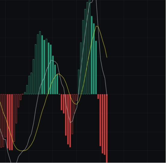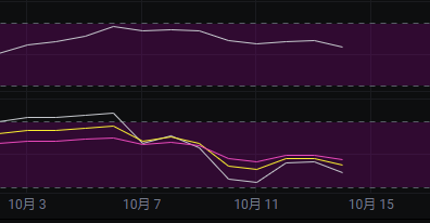 Boll上看,上轨趋向于走平,下轨随着目前的阴线,是走了一个开口的动作,上下轨不同步,这里定义为宽幅震荡,震荡价格打到中轨附近,没能站上中轨,那就要继续下跌回到下轨附近再重新选择。