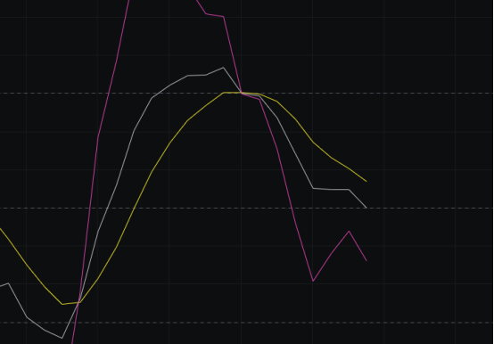 Obv上看,高点在下移,虽然前两天的上涨让快线站上了慢线,但今天的下跌也使快线快速地下跌了。唯一还好的是慢线还在稍微上抬,但这里只需要连续的阴线就能使慢线开始走平。