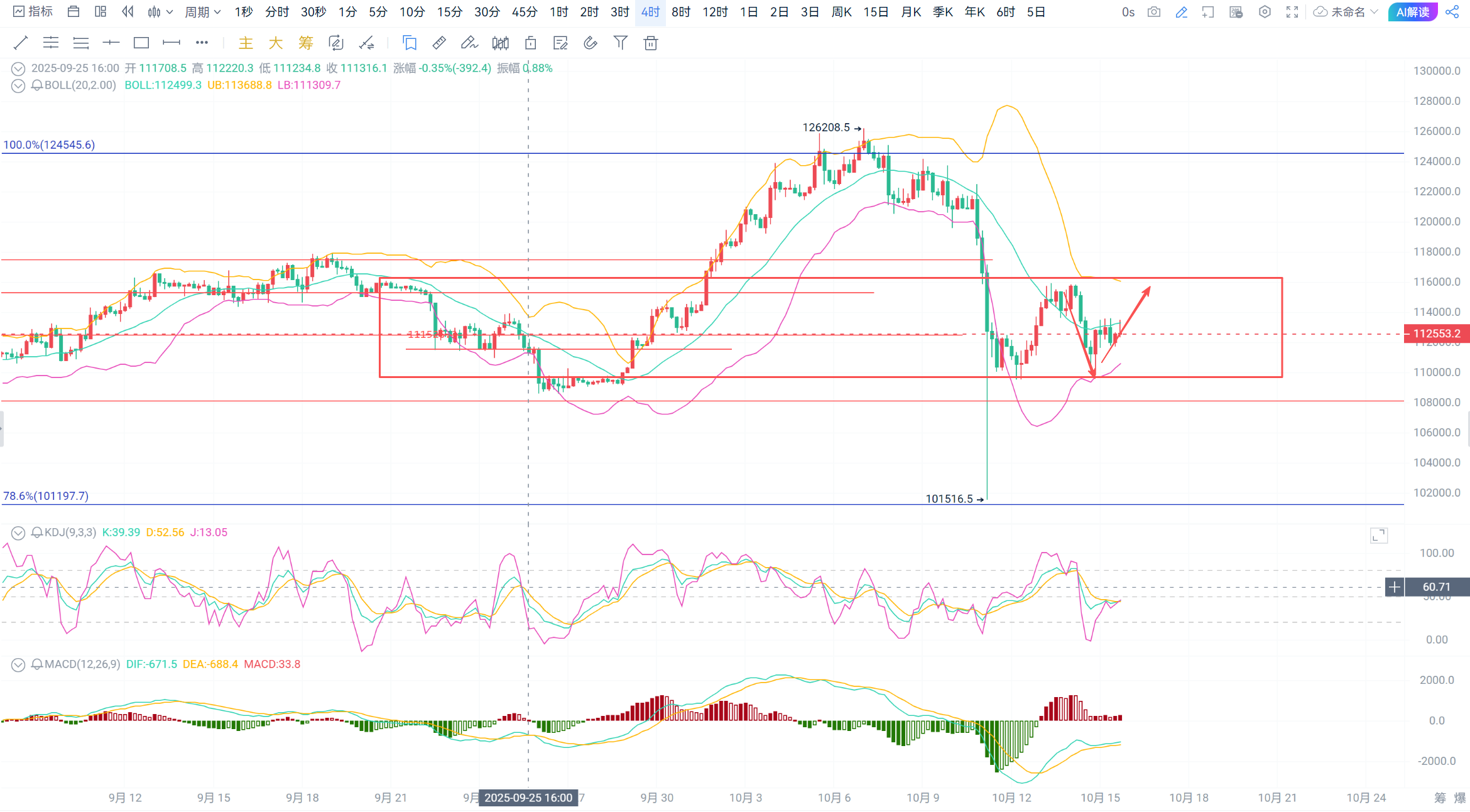 比特币111500-112000做多,目标113000-114000,防守110500;