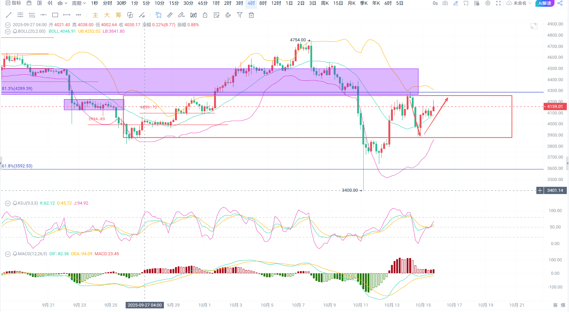 以太坊4100-4130做多,目标4200-4300,防守4040;
