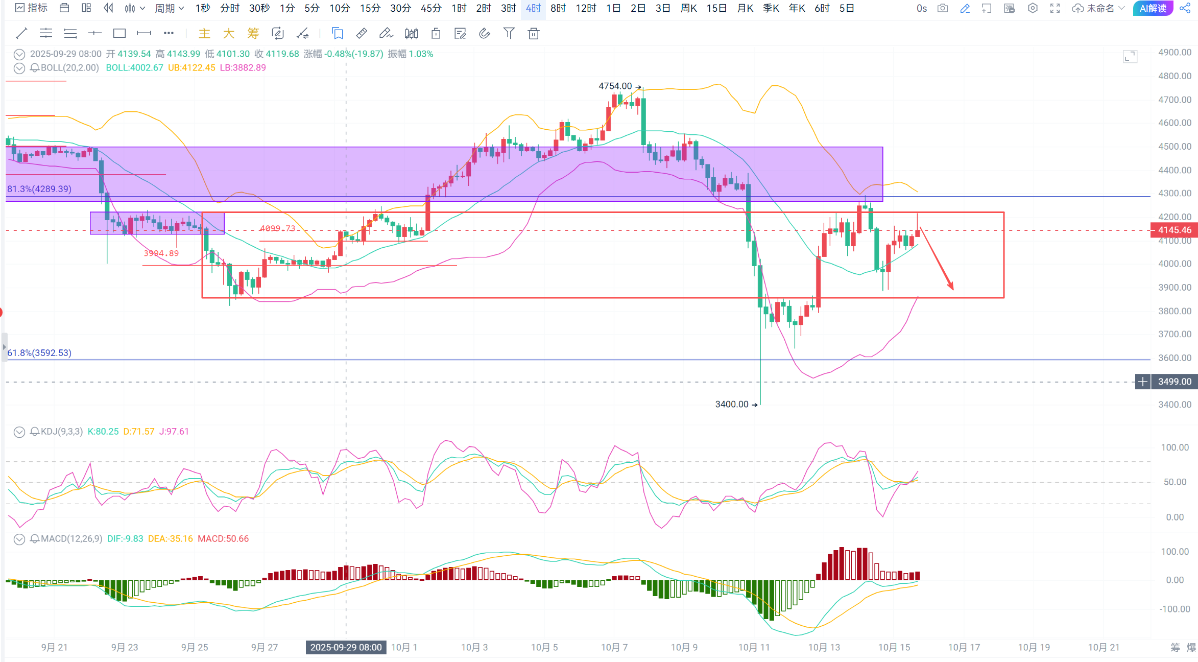以太坊4160-4200做空,目标4060-4000,防守4250;