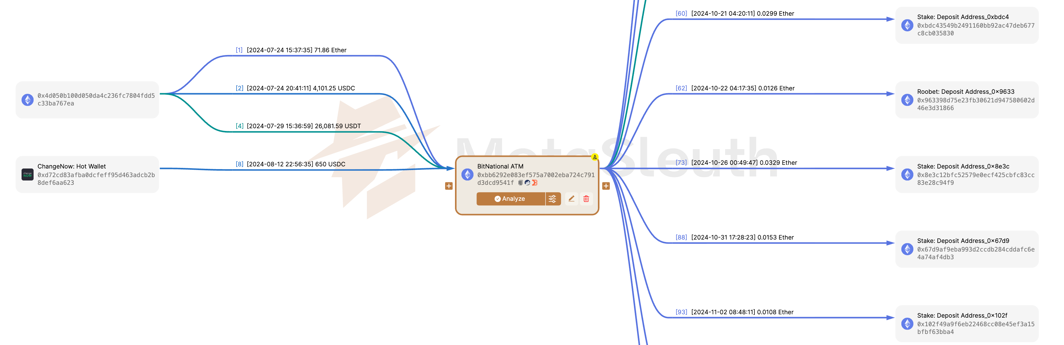 FinCEN在通知中反复强调,金融机构需「清晰解释风险来源」——比如CVC Kiosk的资金是否与贩毒集团相关、是否存在跨地址拆分交易的嫌疑。这一点在Web3领域尤为关键:虚拟货币的匿名性和跨链特性,让资金流向常呈「碎片化」,传统人工核查不仅效率低,还容易遗漏关键关联。Phalcon Compliance的可视化资金流图谱与跨链追踪功能,恰好解决了这一痛点:它能直观拆解资金从「源头」到「终点」的完整路径,甚至标注出每笔交易的风险等级,让监管机构清晰理解「为何该地址高风险」,大幅降低可疑交易报告(STR)的生成成本。