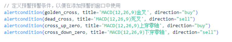 该策略的核心在于多警报叠加:金叉确认趋势启动、死叉警示止盈离场、零轴上穿强化持多信号、下穿则提示减仓避险。