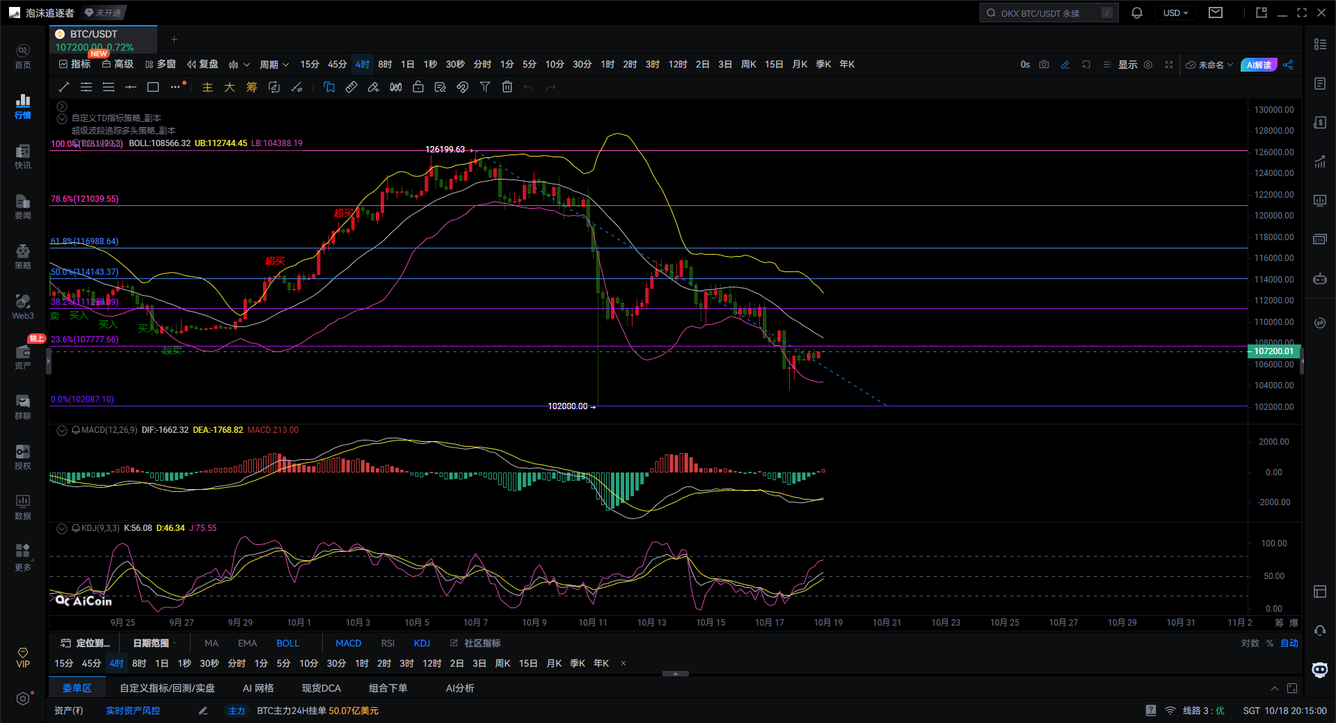 综合分析,比特币目前四小时图显示出短线反弹但中期偏空。短线支撑在107000和104000,关键支撑位102000。上方阻力看108500和110000,中期压力区间114000-117000。技术指标方面,如果MACD形成金叉且KDJ保持强势,可能反弹至110000-112000区间。但如果反弹失败跌破107000,可能会下探102000甚至测试100000关口。整体来看比特币处于技术修复阶段,市场情绪较为谨慎。短期重点关注107000-108500区间的多空争夺,突破方向将决定未来一周走势。