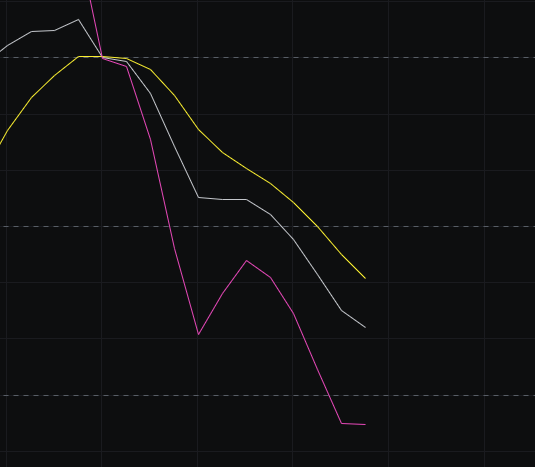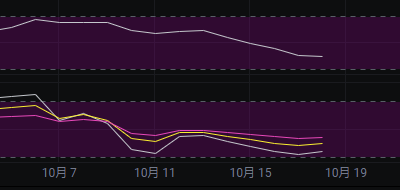 Mfi和rsi上看,两个指标都在弱势区域,且都有向下的走势,所以这里也是看空的。