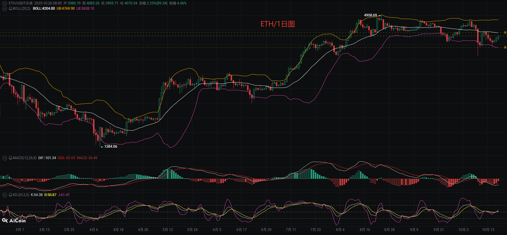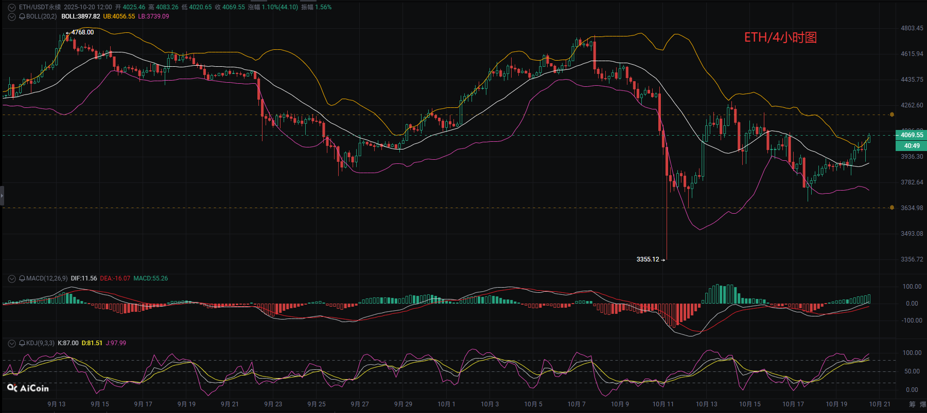 4小时级别:近期出现连续阳线突破4000整数关口,最高触及4083后小幅回落,形成短期高位震荡。前低3906为关键支撑位。1小时级别:早盘放量突破4050后回踩确认,目前形成高点4083与低点4053的窄幅盘整区间。MACD:4小时DIF上穿DEA形成金叉,但日线级别仍处于零轴下方,需警惕反弹持续性。EMA:价格站稳4小时EMA7(3990)和EMA30(3954)上方,但日线EMA120(4116)构成强压力位。