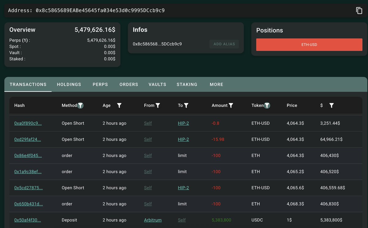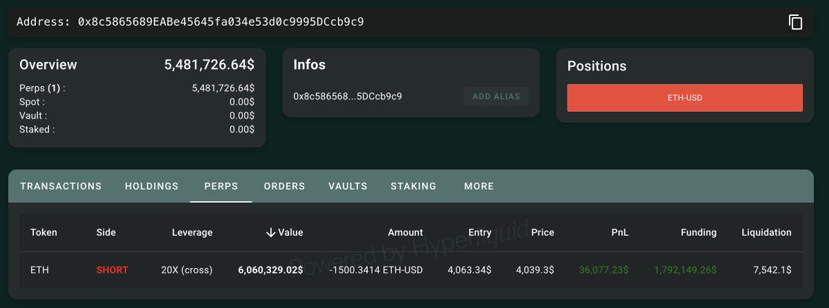 0x8c58 deposited 5.38M $USDC to #Hyperliquid 2 hours ago to open a 20x short on 1,500 $ETH($6.06M).