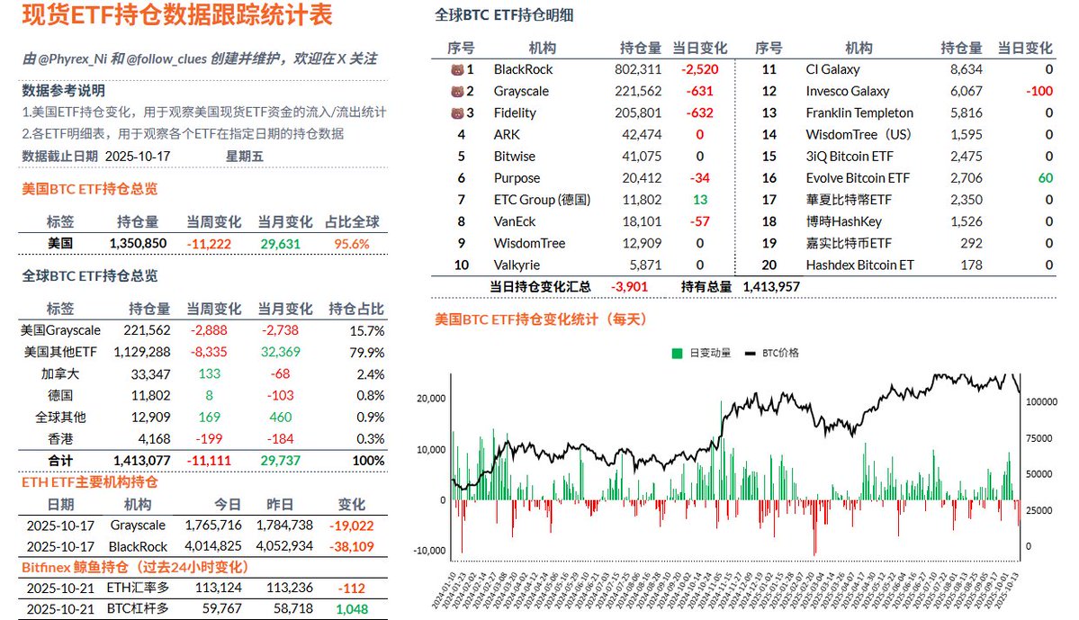 周五的数据能预期到,本身 $BTC 的价格就下探的厉害,引发出一部分投资者的恐慌也是正常的,但有趣的是,实际上周五净流出的 Bitcoin 还是低于周四的,富达和ARK的流出少了很多,但贝莱德的流出占了主导。不过还是以前的状态,流出的仍然是少量,更多的投资者还在观望。