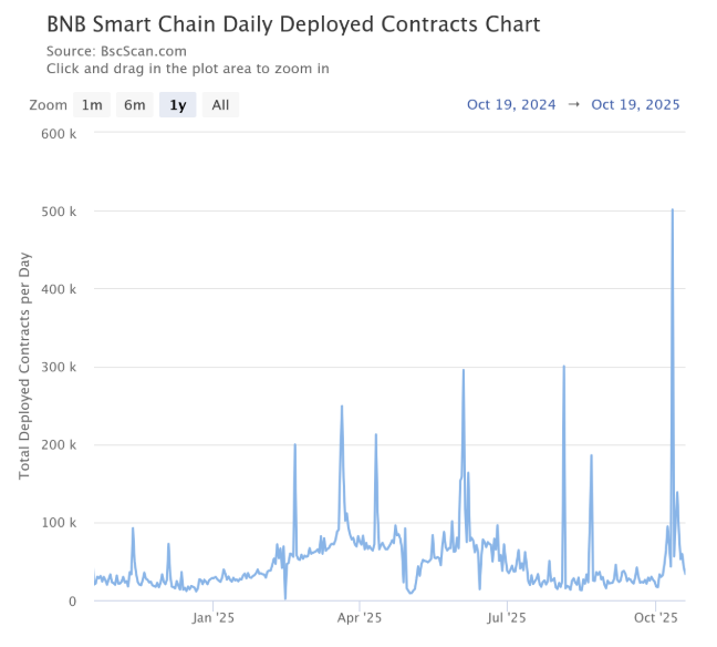 2025年10月初,币安联合创始人何一在社交媒体上的一句“祝你享币安人生”,意外点燃了中文加密社区的创作热情,催生出名为“币安人生”的meme币。这一概念在社群传播与KOL助推下迅速发酵,短短数日内市值飙升至5亿美元,涨幅高达6000倍,形成现象级热点。根据DeFiLlama统计,BNB链DEX日交易量飙升至60.5亿美元,吸引了超过10万名新交易者入场。从一开始的币安相关meme爆火再带动后来的中文meme出圈,此次BSC上诞生多个热度较高meme,例如: