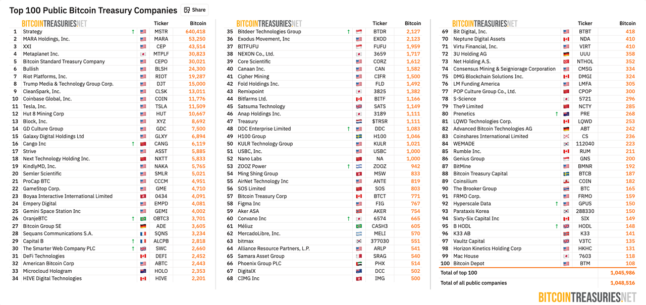 在飞轮效应彻底成型之余,Strategy DAT 模式的成功也吸引了不少企业复制其策略,其中包括有日本「微策略」之称的 Metaplanet、特斯拉、传统游戏零售巨头 GameStop 等相继入局。在这些企业的带动下,DAT 叙事不断增强,越来越多的上市公司开始通过融资购买比特币入局 DAT 市场。自此,「机构时代」的一大支柱正式发力,上市公司在持续积累比特币的同时,也推动比特币屡创新高。