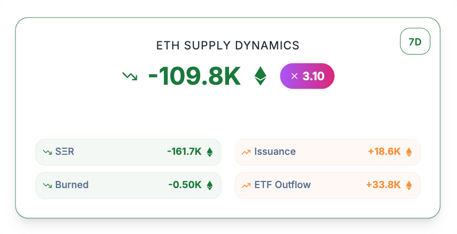 StrategicETHReserve.xyz 数据显示,截至撰稿时,上市公司持有的以太坊总持仓量为 574 万枚,在过去 7 日内,这一数字已减少了约 16.17 万枚。即便在以太坊财库公司 BitMine、SharpLink 持续发力增持的情况下,持仓量依然出现了下滑。链上监测数据显示,自「10.11」市场崩盘以来,BitMine 至少已增持近 38 万枚以太坊,SharpLink 同样于 10 月 19 日以 3892 美元的平均价格购入 19271 枚以太坊。在此基础上,以太坊持仓量的减少,表明更多中小型企业正在选择卖出以太坊。