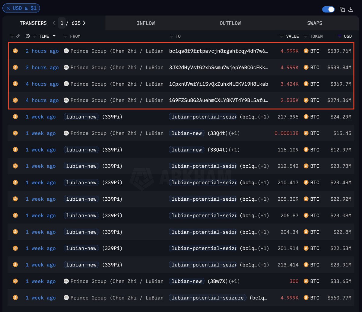 Chen Zhi - billionaire international criminal, leader of multi-billion dollar Prince Group, and global fraudster sanctioned by the US Government has just moved $1.72 Billion of $BTC.