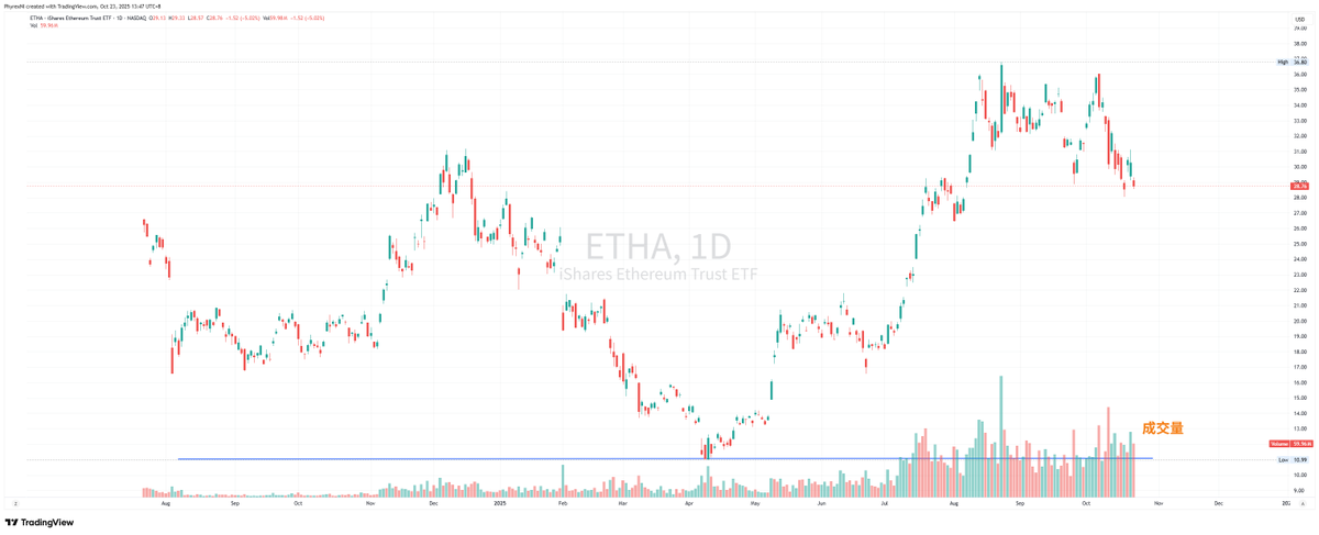 贝莱德ETH现货ETF $ETHA 的价格走势和成交量
