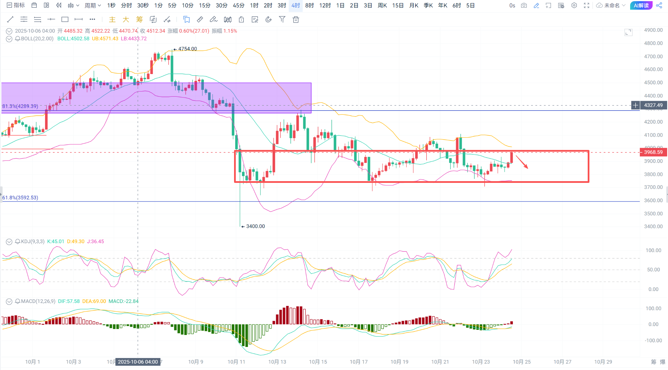 现价以太坊3970-4000做空,目标3900-3850,防守4050;
