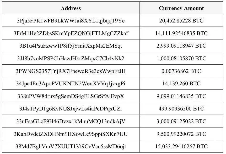 Some of the virtual currency addresses purchased by Chen Zhi after laundering. Image from the indictment released by the U.S. Department of Justice.