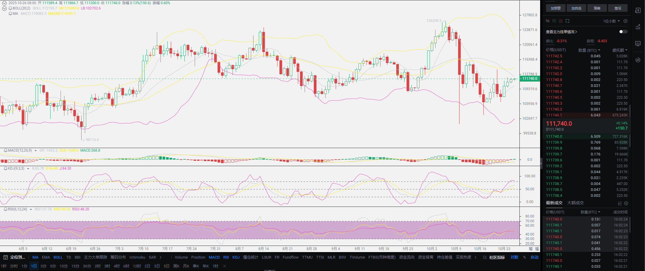 Especially considering the short-term aspect, this kind of speculative state is not Lao Cui's comfort zone. Although I do engage in some contracts daily, most are to validate my viewpoints. The positions in Lao Cui's contracts are not large, maintaining around 20K. Heavy positions are definitely chosen in spot trading; my personal long positions are still relatively smooth, which everyone in my circle can see. Regarding the estimated low point in November, it is also very difficult for Bitcoin to break below the 100K mark. If your current position can support Bitcoin's decline by 20K, entering the market at this stage will definitely not result in significant differences. The competition is merely one of patience; if the capital volume in your hands cannot support you until the end of the year, then it is not suitable for you to enter the market at this stage. Basically, the entry positions given by Lao Cui are based on the current price, providing expected orders. Many friends are basically unable to enter the market; if you are stuck based on Lao Cui's positions, you can directly communicate with Lao Cui, and I will provide personal suggestions, whether to adopt them depends on your own viewpoint.