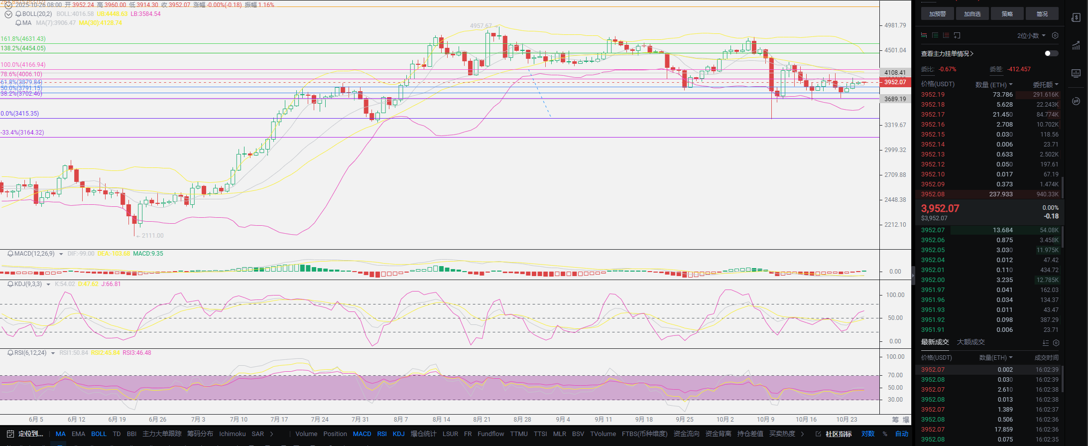 Lao Cui's summary: This article is somewhat chaotic because I have been busy arranging the entry and exit of spot SOL and contracts these past two days, so the focus has not been on the article. If you have specific questions, please try to send private messages. I will find free time in the evening to reply to everyone, so don’t worry. Since these past two days have also been a weekend state, the market fluctuations are not large, but as long as it does not break down, it is highly likely that after Monday, growth will begin, which is tomorrow. The speculation about interest rate cuts and the issue of balance sheet reduction should result in greater fluctuations than the interest rate cuts in September, depending on whether the US can resolve the shutdown issue in time for SOL to be listed; currently, there are not many platforms for listing. I would also like to mention OKB; users who have already purchased OKB do not need to worry, as there will still be growth. However, compared to the two, users who have not entered the market at this stage should focus on SOL, as BNB is not worth picking up again. Today is the best date for you to enter the market; tomorrow may not provide more entry opportunities. Currently, Lao Cui's contract entry position is also mainly based on ETH, with a price around 3930. The ideal situation is to exit at 3968, but looking at it long-term, there should be no problem above 4000. If you can hold until the interest rate cut period, or even after, a 100-point profit can be confirmed. Be sure to manage your positions well.