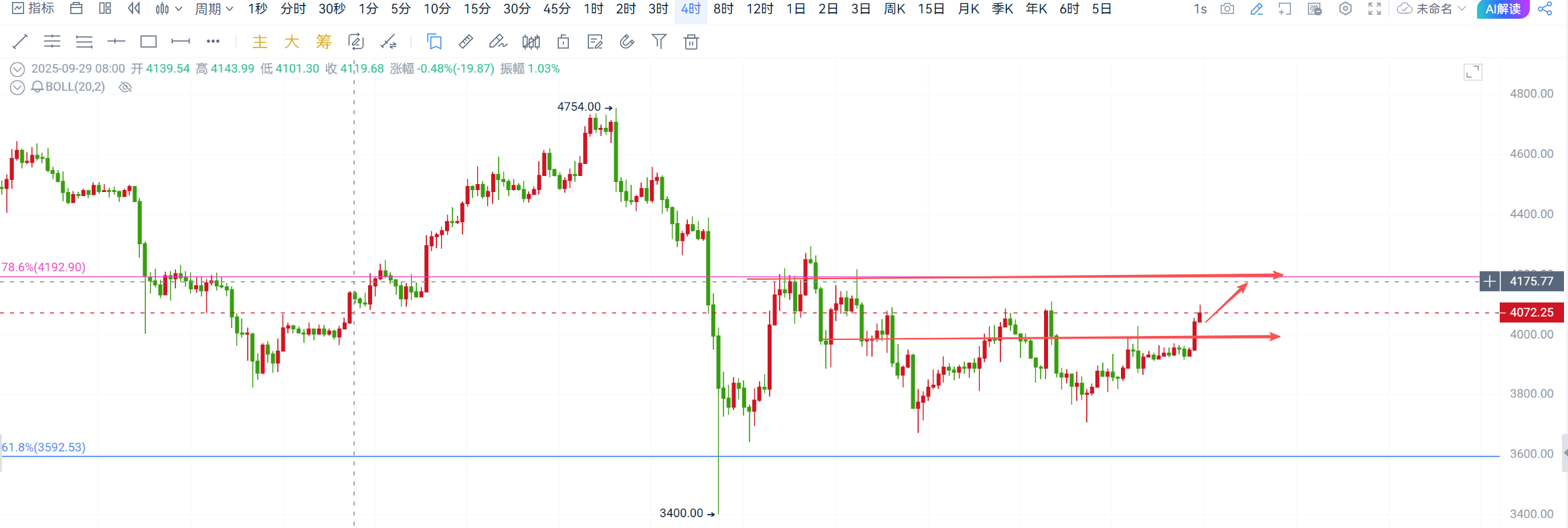以太4000-4030做多,目标4100-4180,3950下方损;