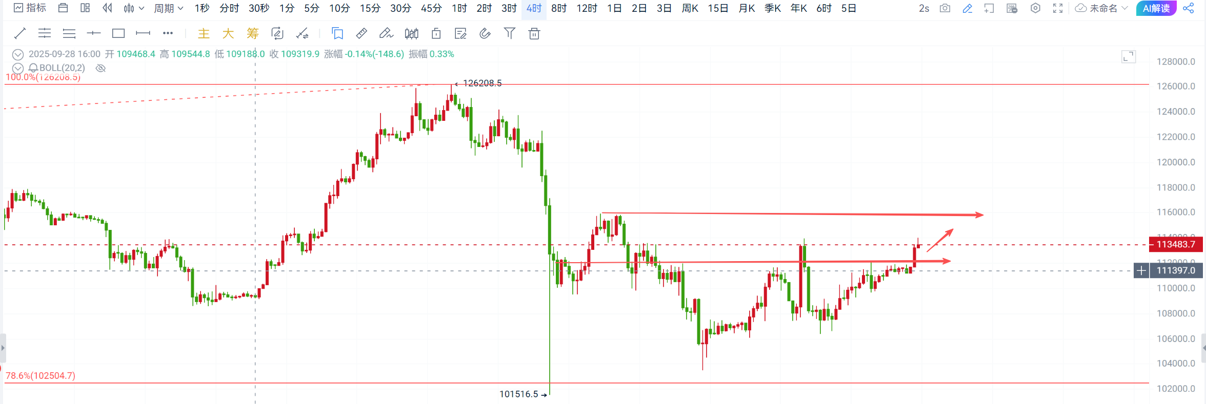 4小时级别看,大饼已逐步上行至短线压制113000附近,破位看115000-116000,支撑转换成111500-110500,以太4小时也是上行至短线压制4080附近,破位看4180-4270,支撑转换成3980-3950;