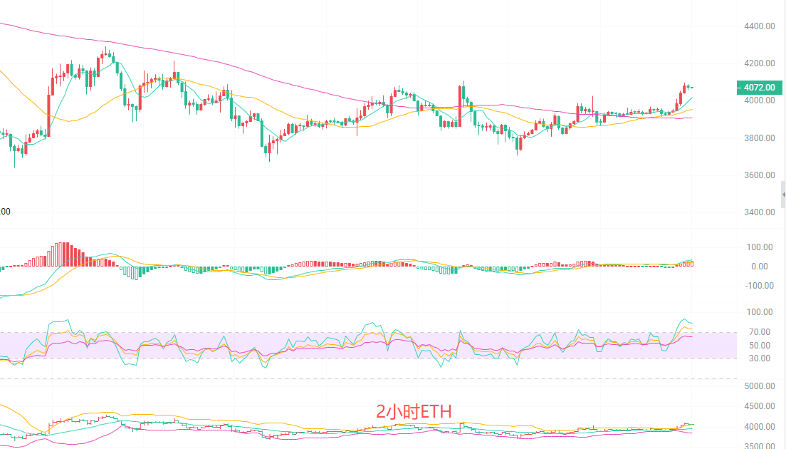 发稿前以太坊现价4075,丽盈观察目前盘口以太坊上涨趋势,技术面显示出较为强劲的看涨信号。MA多头排列与黄金交叉的共振表明市场处于强势上涨阶段,同时近期的看涨吞噬形态进一步强化了短期内价格可能继续上行的预期。2小时K线显示连续多根阳线,且高点不断抬升。日线处于强势阶段。MACD2小时多头动能增强仍有上涨空间。EMA均呈现多头排列,下方有很强的支撑在高位获利了结以后丽盈建议等回调底部支撑以后可以继续开多,暂时耐心等信号出现