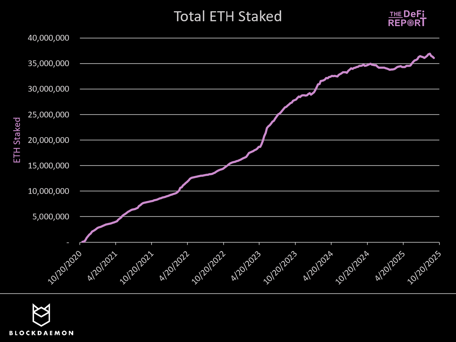 Currently, over 36 million ETH is locked in staking contracts, accounting for 29.8% of the circulating supply. The total amount of staked ETH has grown by 4% over the past year and by 33% over the past two years.