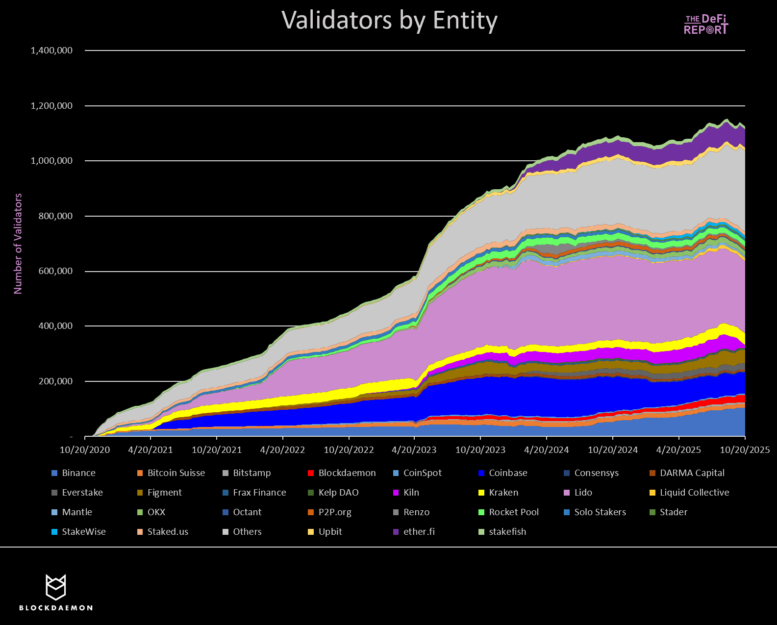 Each entity in the above chart operates validator infrastructure on a large scale. Their share in the Ethereum staking market is directly related to the number of validators they operate.