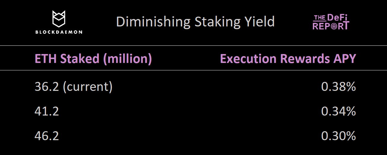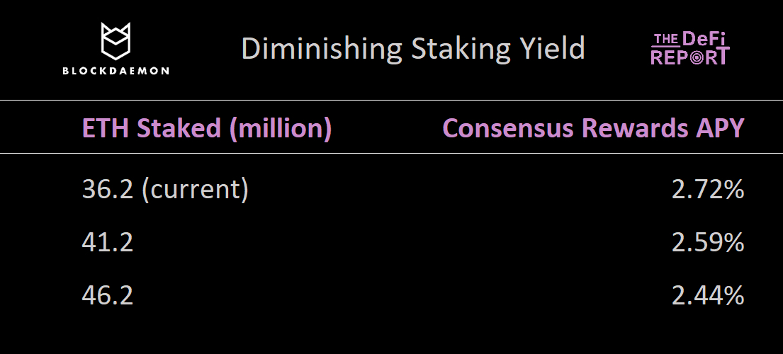 Of course, if more users flock to Ethereum, we expect to see higher priority fees and MEV—which may offset the decline in execution rewards from more ETH being staked.