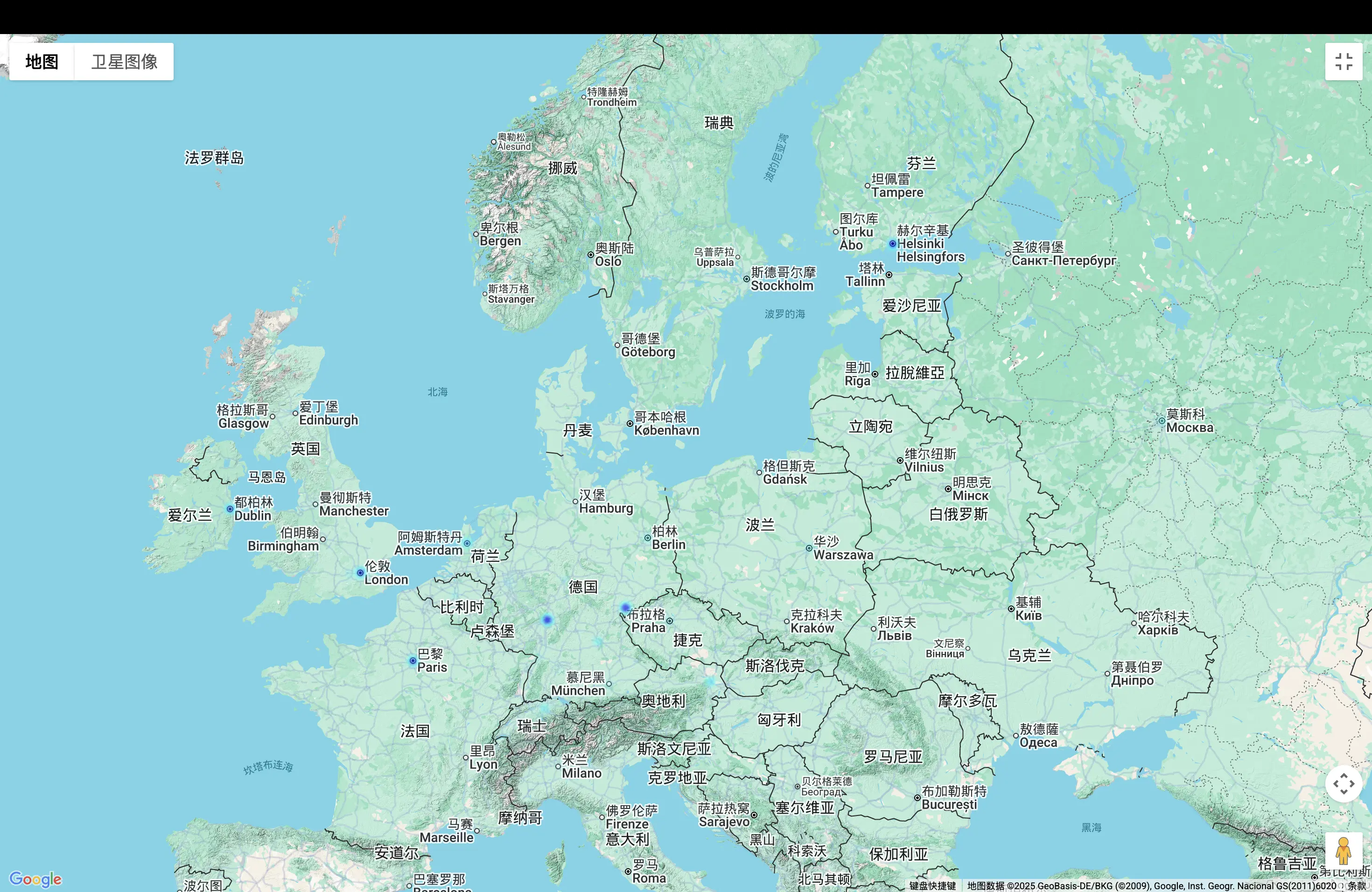 至于欧洲,数据来看德国占比 13.13%,英国占比 4.47%,法国占比 4.28%,芬兰占比 3.78%。地图上来看,节点也基本分布在各国的核心城市,包括爱尔兰都柏林、法国巴黎、德国法兰克福、芬兰赫尔辛基等。