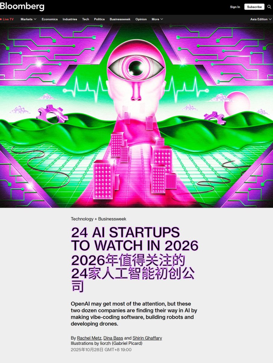 今天 #Bloomberg 列举了24家2026年最值得关注的 #AI 公司,可以留意一下,万一他们IPO上市,可能成为市场瞩目的焦点。
