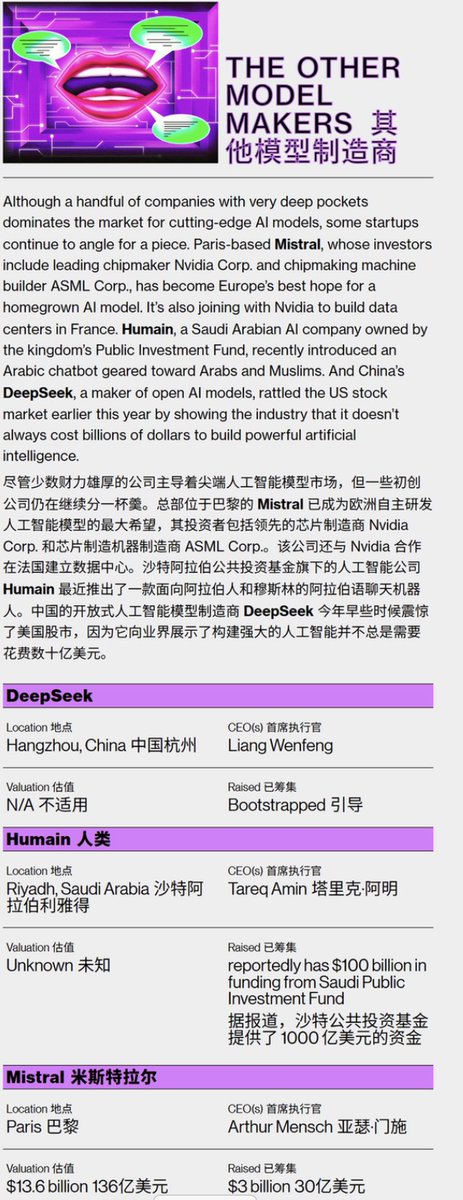 这类公司就像是想挑战 #OpenAI、#Anthropic 的“第二梯队”,代表欧洲、中国、沙特在 #AI 主权上的新势力。