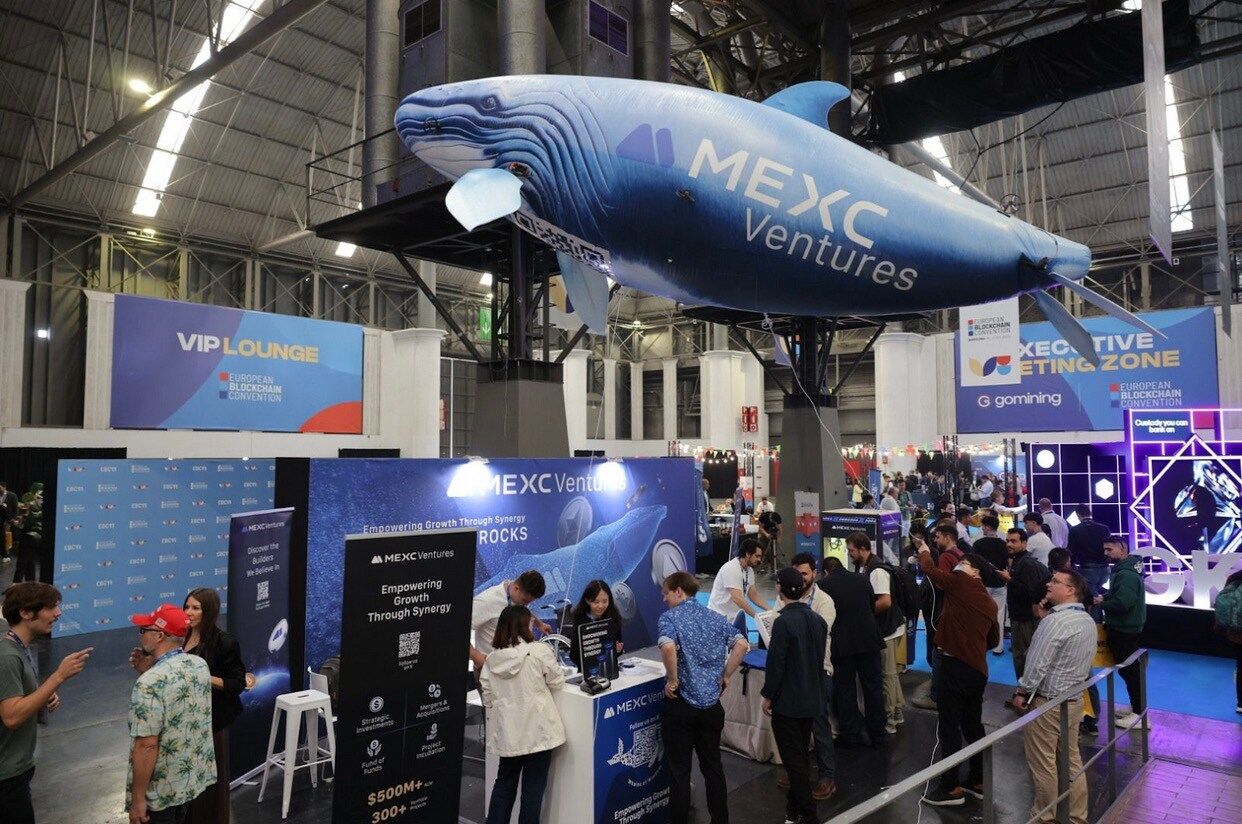 我来到某知名交易所旗下的 Ventures 展位前——那里立着一个巨大的蓝色气球,造型像一头跃起的鲸鱼,印着他们的机构 Logo,在灯光下闪着金属般的反光,吸引了无数目光。