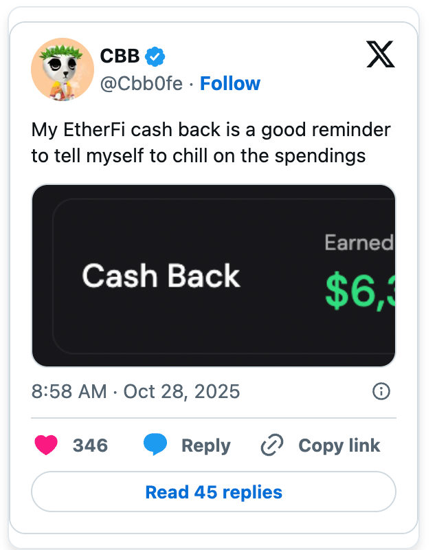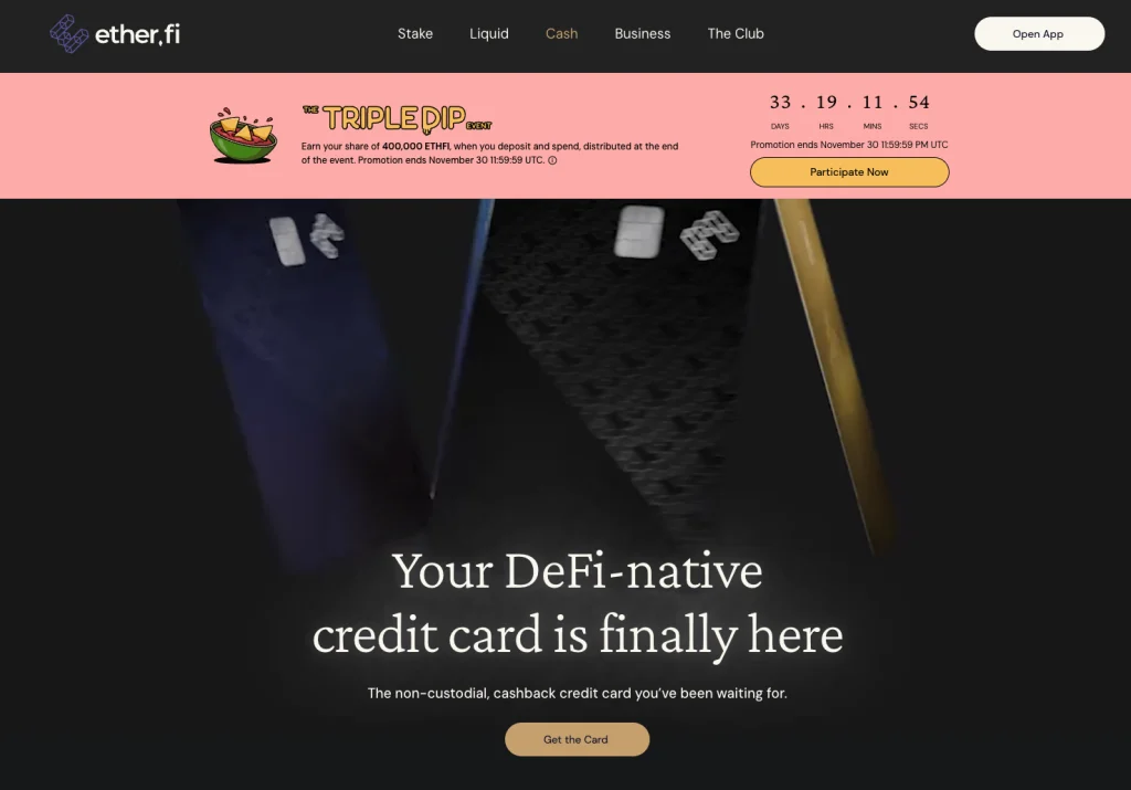 EtherFi 的 Cash 卡正在重新定义加密卡的标准。与其出售你的 ETH(以太坊),它允许你以 ETH 为抵押借贷稳定币进行消费——这意味着你的资产在使用的同时仍然可以产生收益。这款卡完全非托管,直接与您的 DeFi 钱包集成,还支持 Apple Pay 和 Google Pay。
