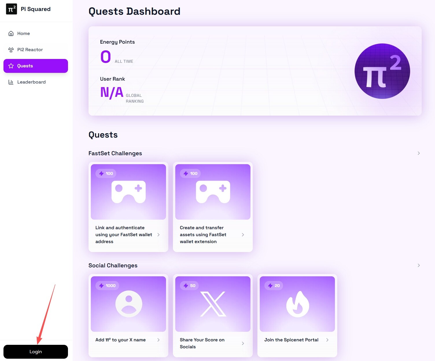 STEP 2. Click on user login in the lower left corner of the Pi Squared page, log in with your Google email, and bind your X account, Discord, and wallet.