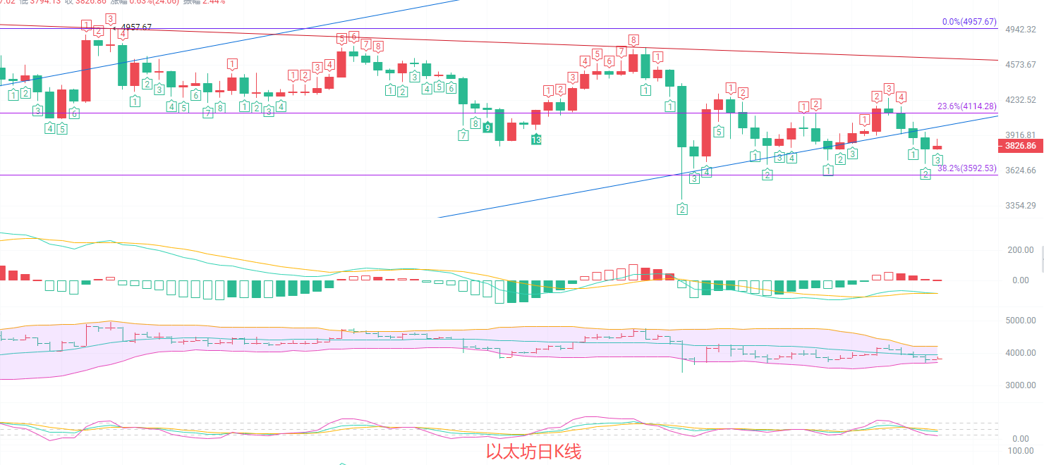 The current price of Ethereum is 3,827. It is now 2 AM Beijing time. In yesterday's article, I mentioned that the next opportunity to go short would be around 3,850. Although the price hasn't dropped much yet, the entry point for going short has been reached. Since the market has entered the hunting range, don't hesitate; just set your stop loss and hold. Now is the time to exchange time for space.