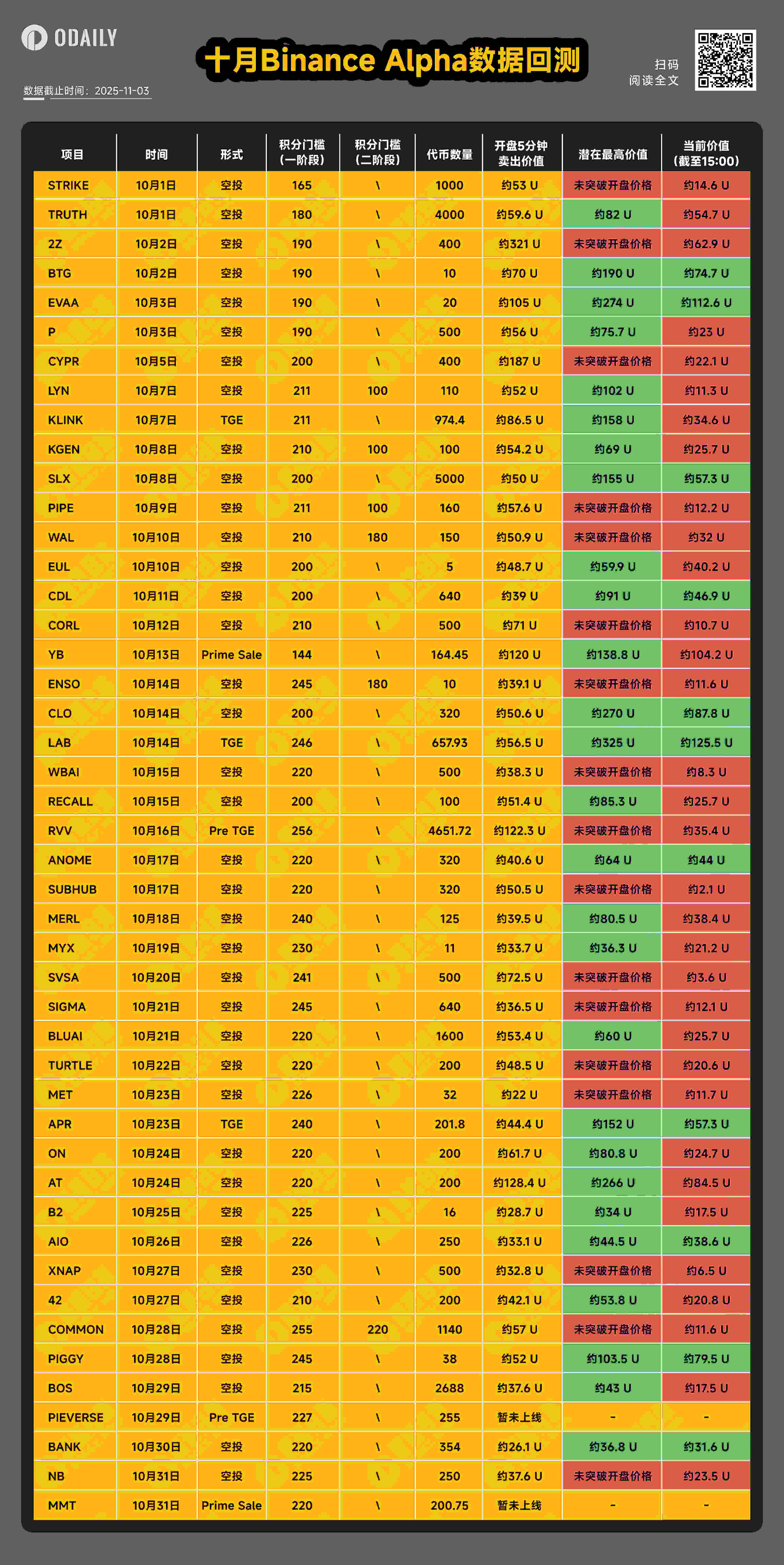 十月Binance Alpha数据回测,“僧多肉少”新常态下如何优化策略?