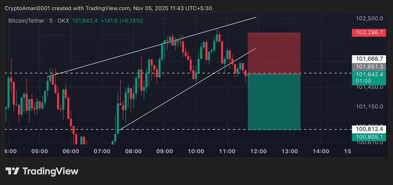 晚间最低跌破99000附近 目前交易价格大约101900附近 测试99000-101000附近需求趋于,在此区域,买盘此前多次介入,如果价格在此区域智商保持,将可能反弹。