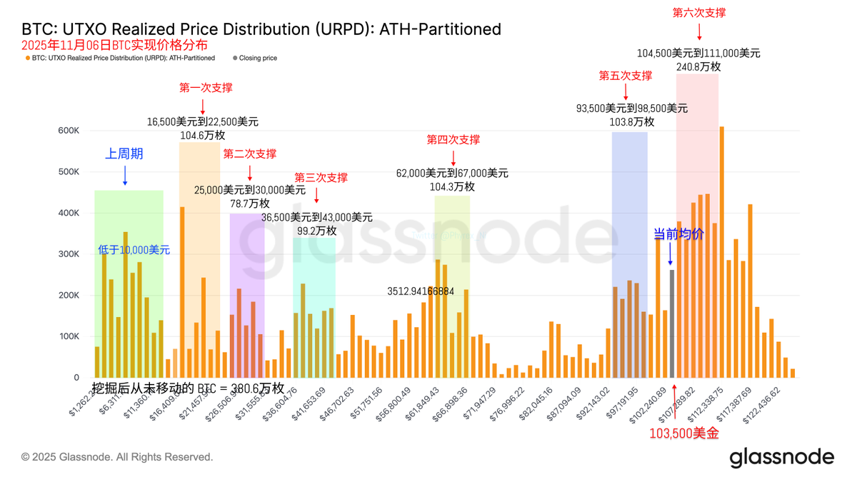 从 URPD 的数据来看,下跌的时候都没有改变支撑结构,就更别说上涨的时候了,而且昨天我也在说,只要是支撑结构不被破坏,价格回到支撑点会很容易,今天就已经回到了 104,000 美元附近。