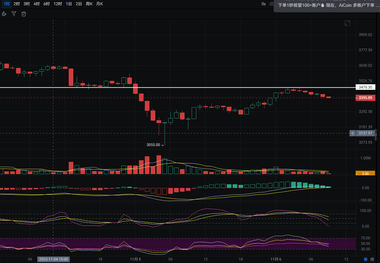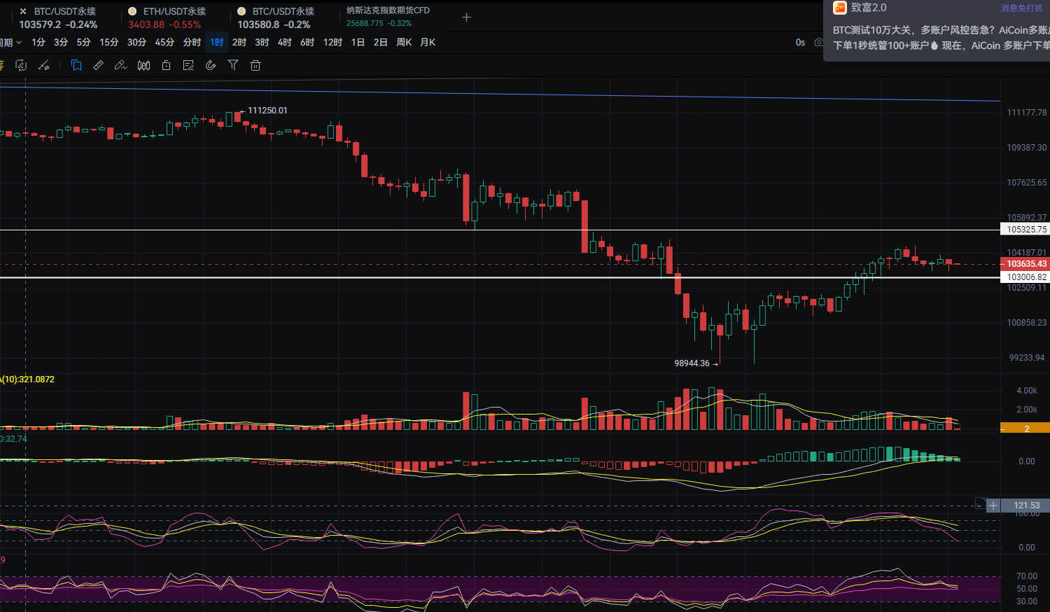 大家早上好,我是江新。 本月2号开始大饼泄了万点,反弹个一半也不是不合理,昨天夜盘大饼给到了104200的空单加仓机会,以太被打损了。虽然白盘,乃至后市以太还是跌,但是单日超过两百点的反弹,就够把一些人洗干净了。清完杠杆,延续方向,是修正市场情绪的重要一环。