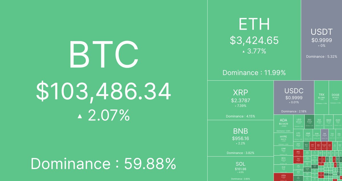 - 比特币反弹至$103,100,之前触及日低$98,944