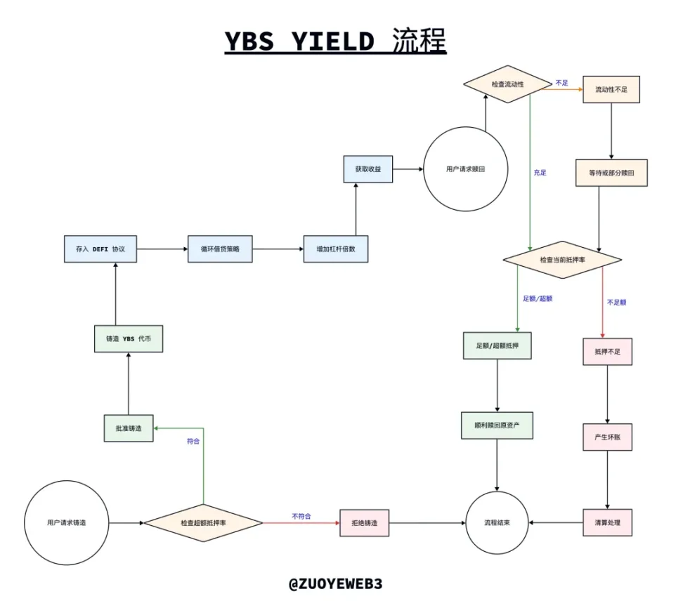 图片说明:YBS 铸造、收益和赎回流程,图片来源:@zuoyeweb3