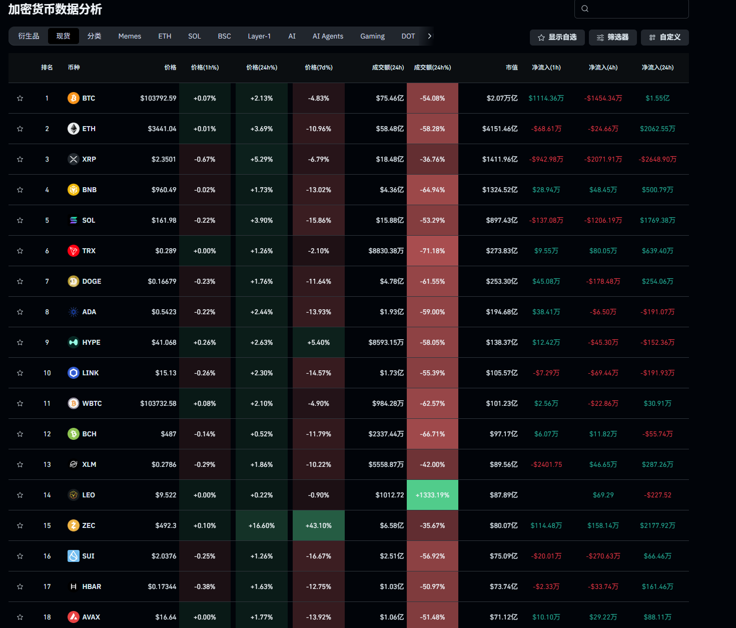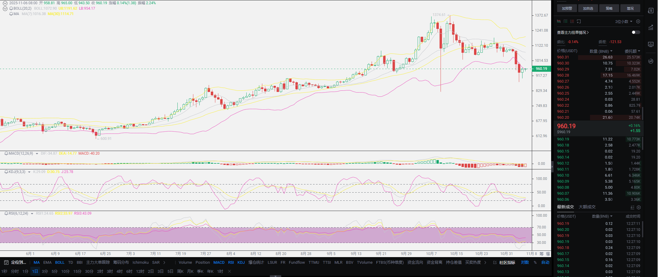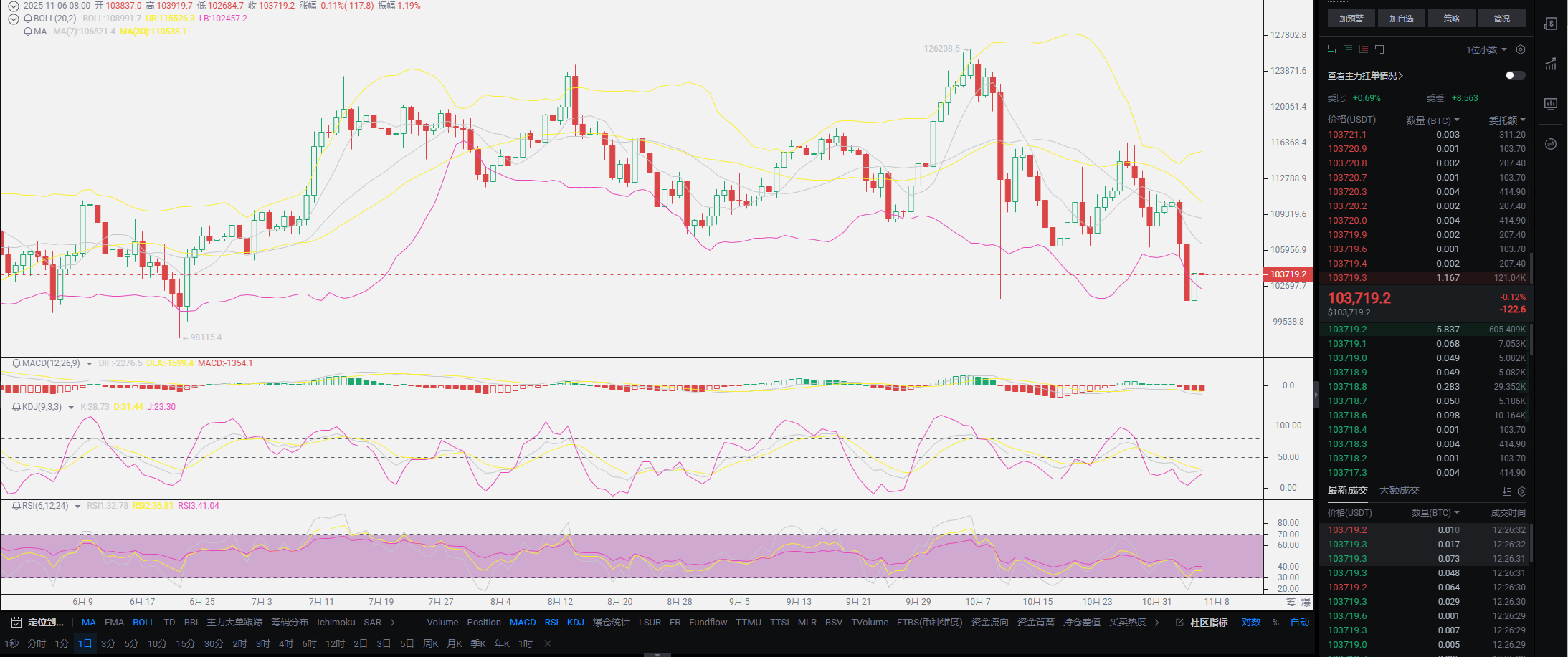 Some users still hold DOGE at 0.35, and there are ancient coin friends still stationed in the 0.5-0.6 range. Unless you have strong conviction, based on the allocation of funds, DOGE has already been abandoned as a coin. You can end your self-comforting mentality; switching investments and accepting reality is your option. The depth of this correction indeed carries significant risks, but it also comes with opportunities; it can be said that whether you can maintain a profitable state before the end of the year depends on this layout. One thing that can be observed is that we are in a short-term downward phase, and the buying power below 100,000 for Bitcoin is extremely strong. If you do not consider the risks in the short term and your positions are sufficient, this will be your best option for bottom fishing. This morning's opening saw Bitcoin's ETF trading volume directly exceed one billion dollars; such a volume of capital entering can indicate the direction for the future. If you still have certain expectations for BTC, buying below 100,000 can bring stable returns.