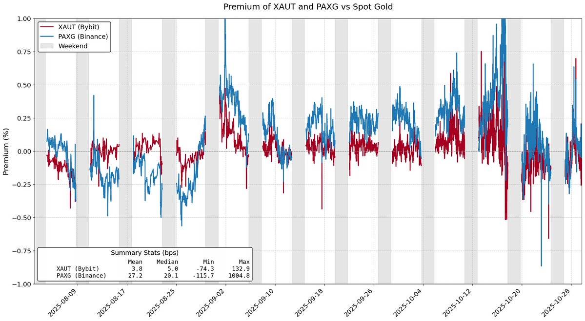 铸造和赎回费用仅为代币化黄金价格设定了“软性”上下限。与代币主要发行模式相关的其他摩擦也可能显著扩大代币化黄金价格的溢价区间。
