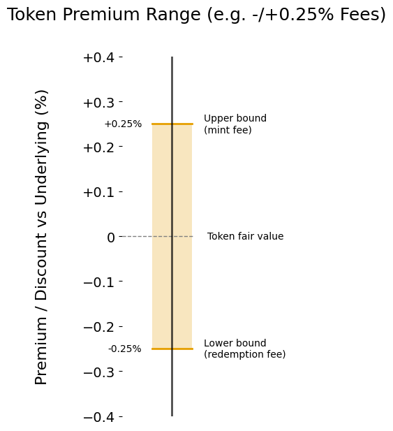 任何代币化产品相较其基础资产的溢价主要由铸造和赎回费用驱动。铸造和赎回费用实际上为代币化产品相较基础资产的价格设定了一个“溢价区间”。