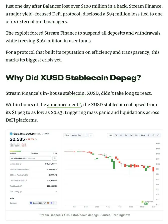 DeFi尸检报告:深扒Stream xUSD如何从“稳定币”沦为链下庞氏骗局?
