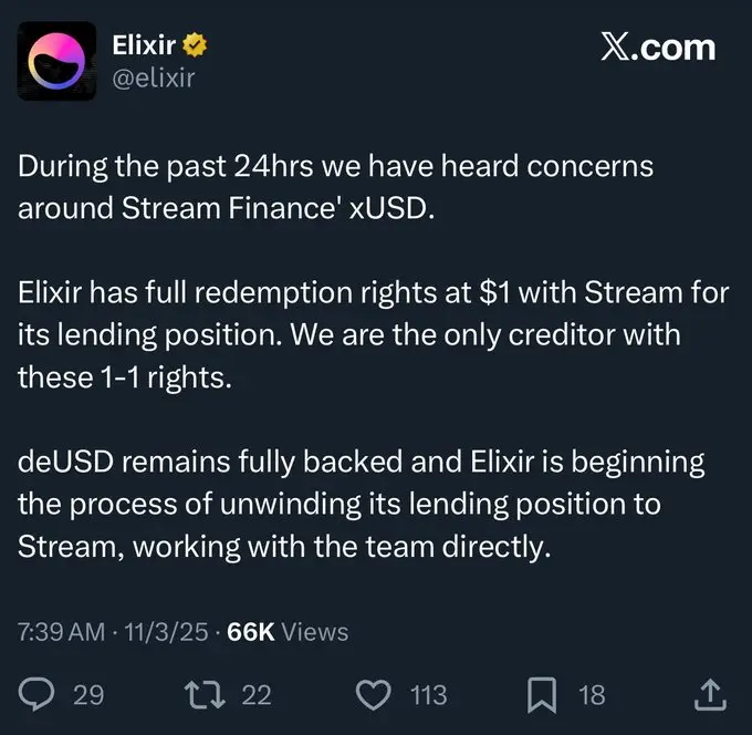 由于此事未向这些DeFi用户披露,如今许多用户对Stream和Elixir感到极为愤慨:他们不仅蒙受资金损失,还要被动承担损失分摊,以确保具有华尔街背景的美国富人得以保全利润。