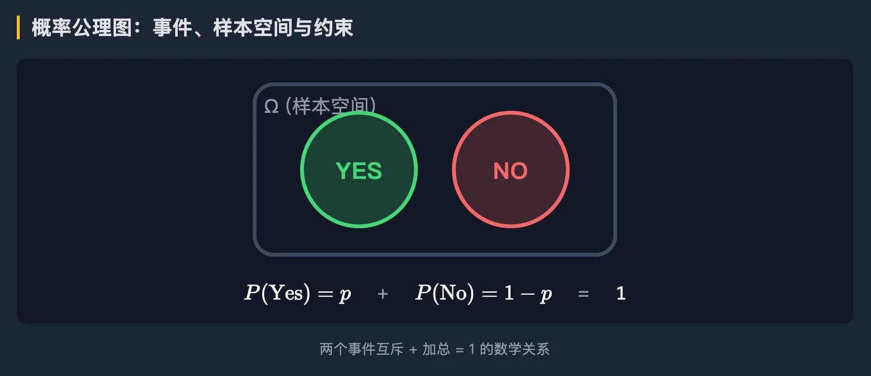 把这和第一部分的概率约束 [P(Yes) + P(No) = 1] 对照一下,形式是不是对应上了?