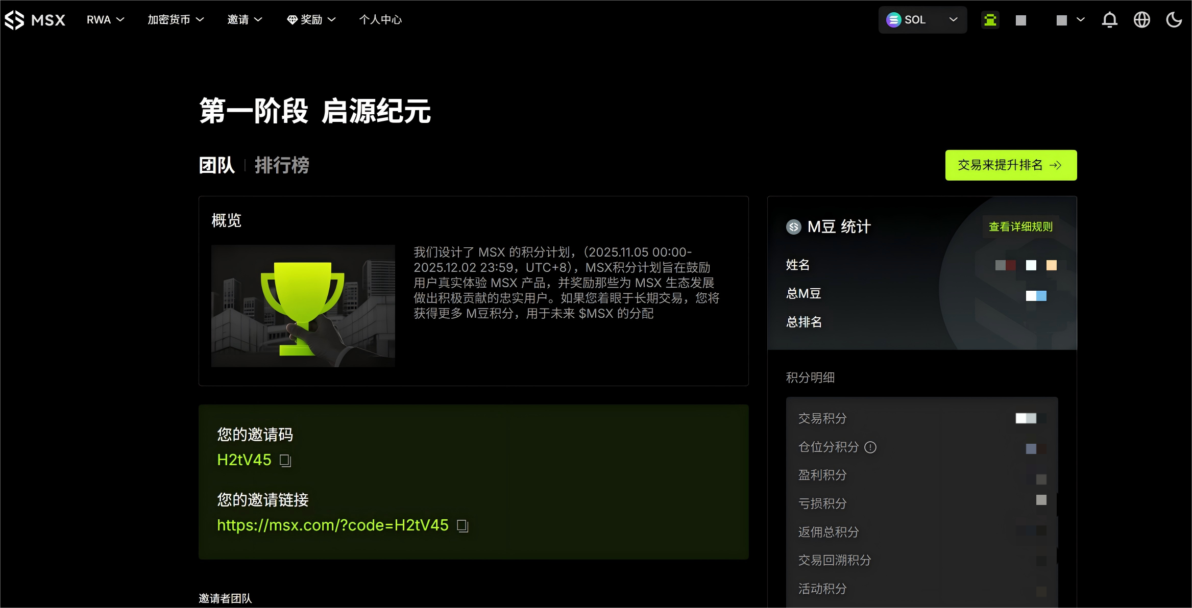 MSX will daily tally users' trading, position, and activity data, focusing mainly on the three core behaviors of users: trading, holding (position/time/profit/loss), and activity (team Boost/referral). Trading and holding are considered the basic points, while activity points are key to achieving "excess returns" on the basic points: